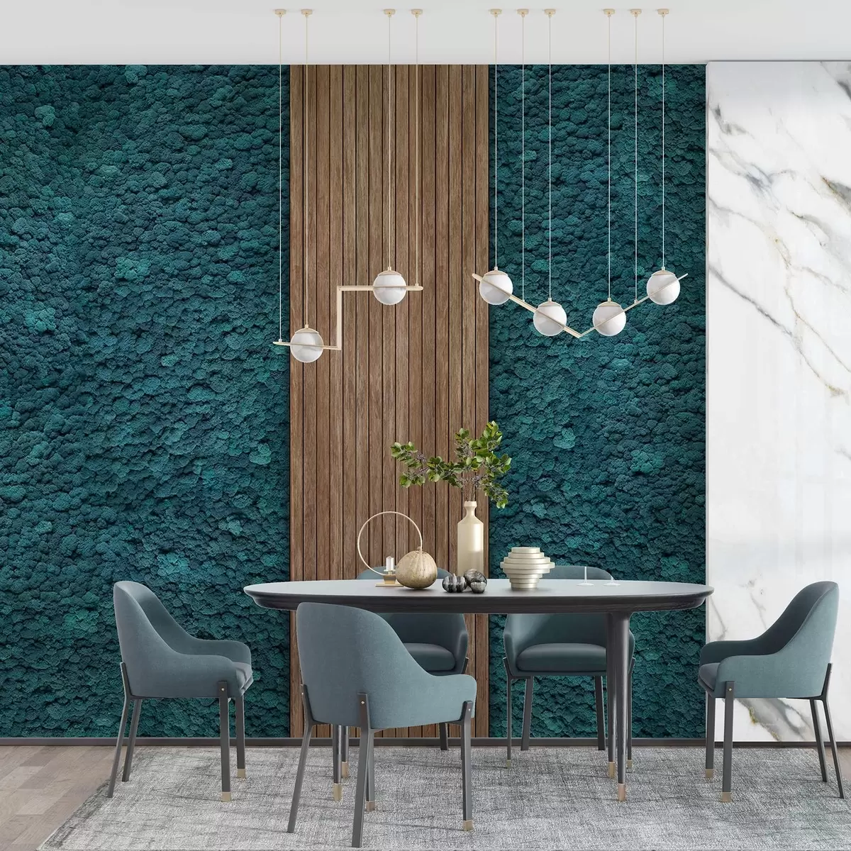 Fotomurales Pared estilo musgo con panel de madera, exuberantes colores azules Nr. w02656v2