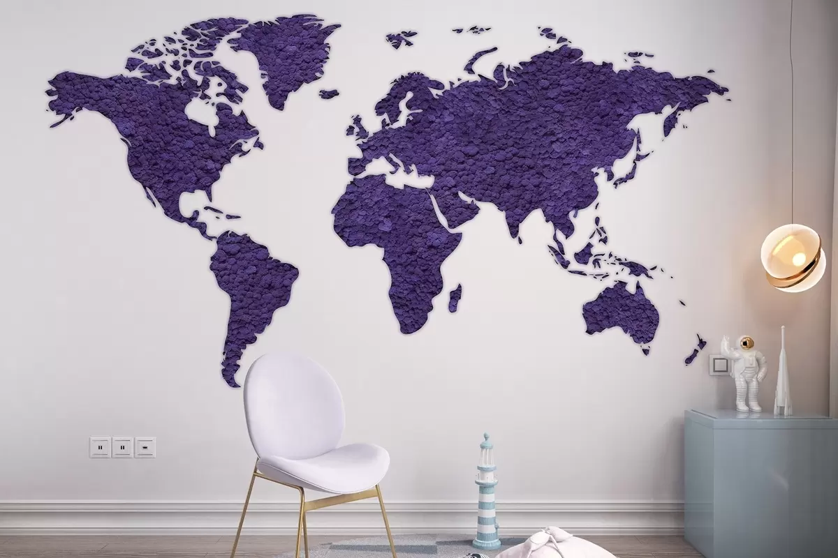 Fotomurales Mapamundi con musgo, naturaleza, paleta de colores púrpura Nr. w02657v3