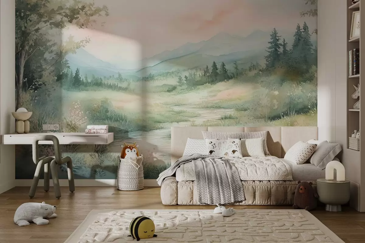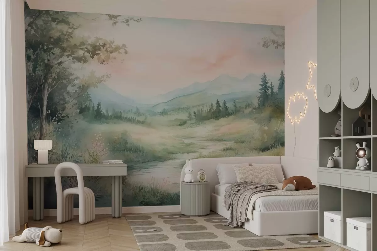 Fotomurales acuarela paisaje con un camino y montañas Nr. w02764