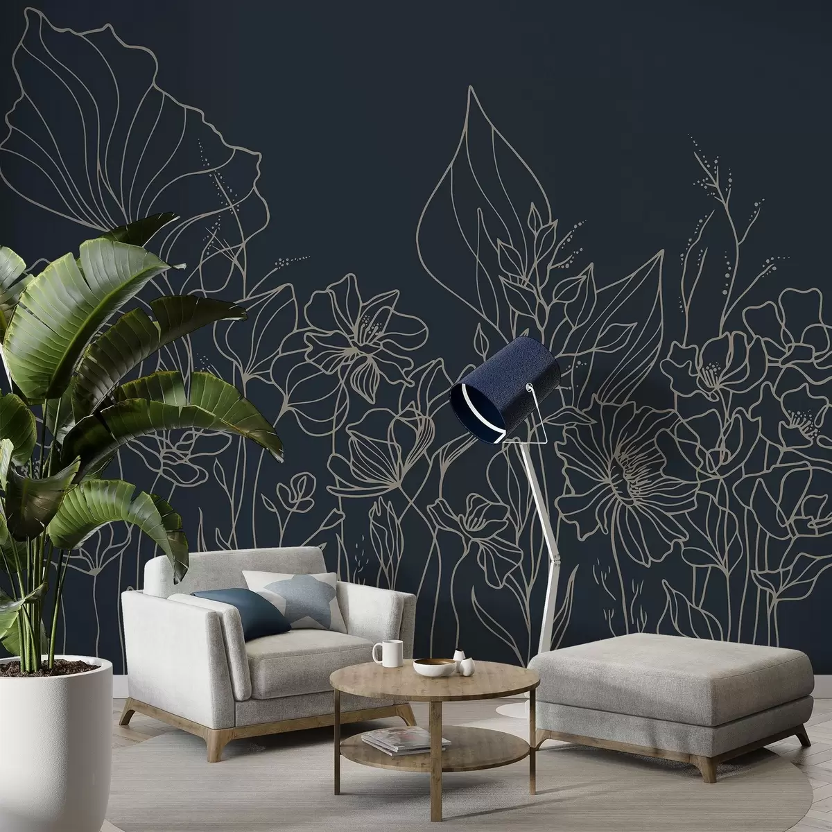 Fotomurales Elegante diseño floral sobre azul marino Nr. w02773v2