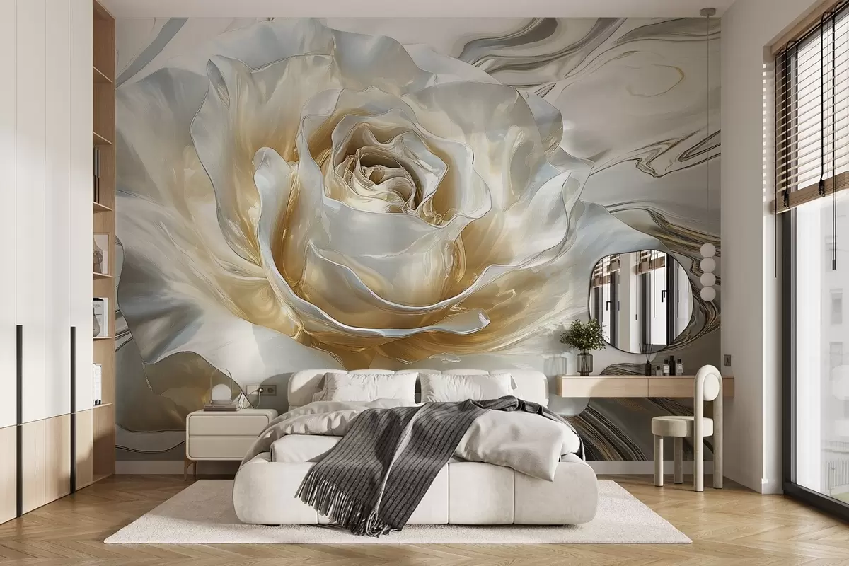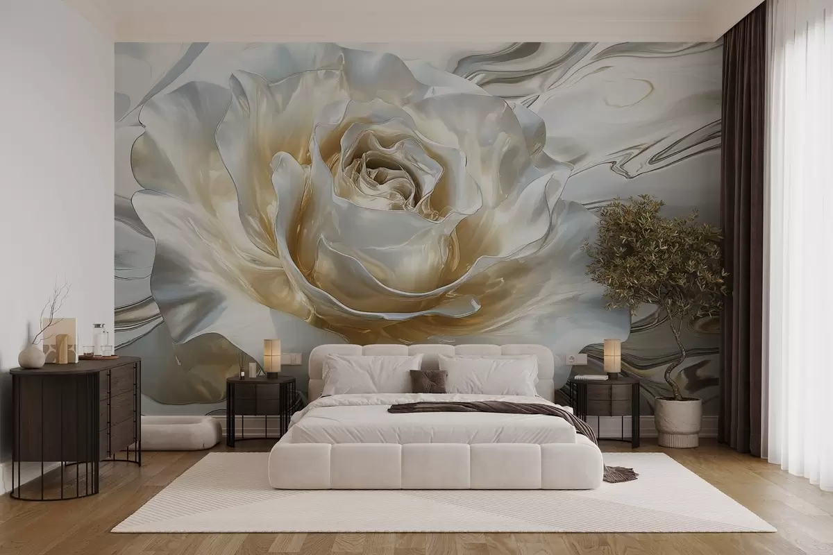 Fotomurales Rosa grande blanca nacarada de estilo metálico Nr. w02870