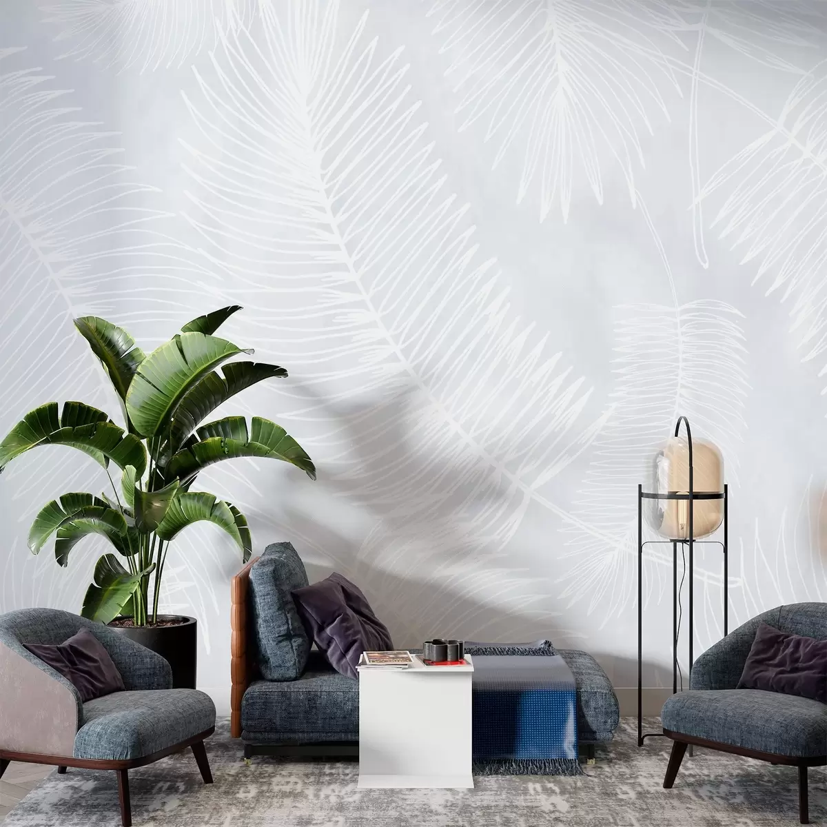 Fotomurales Siluetas de hojas blancas sobre fondo texturizado Nr. w02894v1