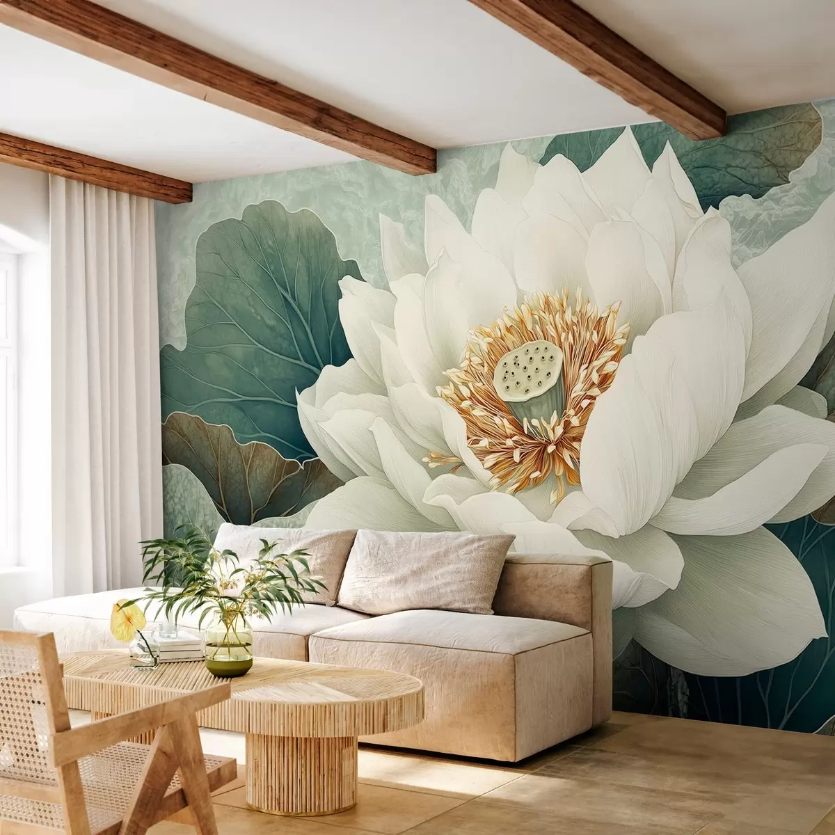 Fotomurales Nenúfar grande sobre un fondo de hojas Nr. w02905