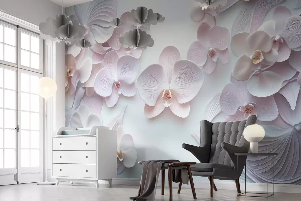 Fotomurales Delicadas flores de arquidios en colores claros con imitación 3D Nr. w02912