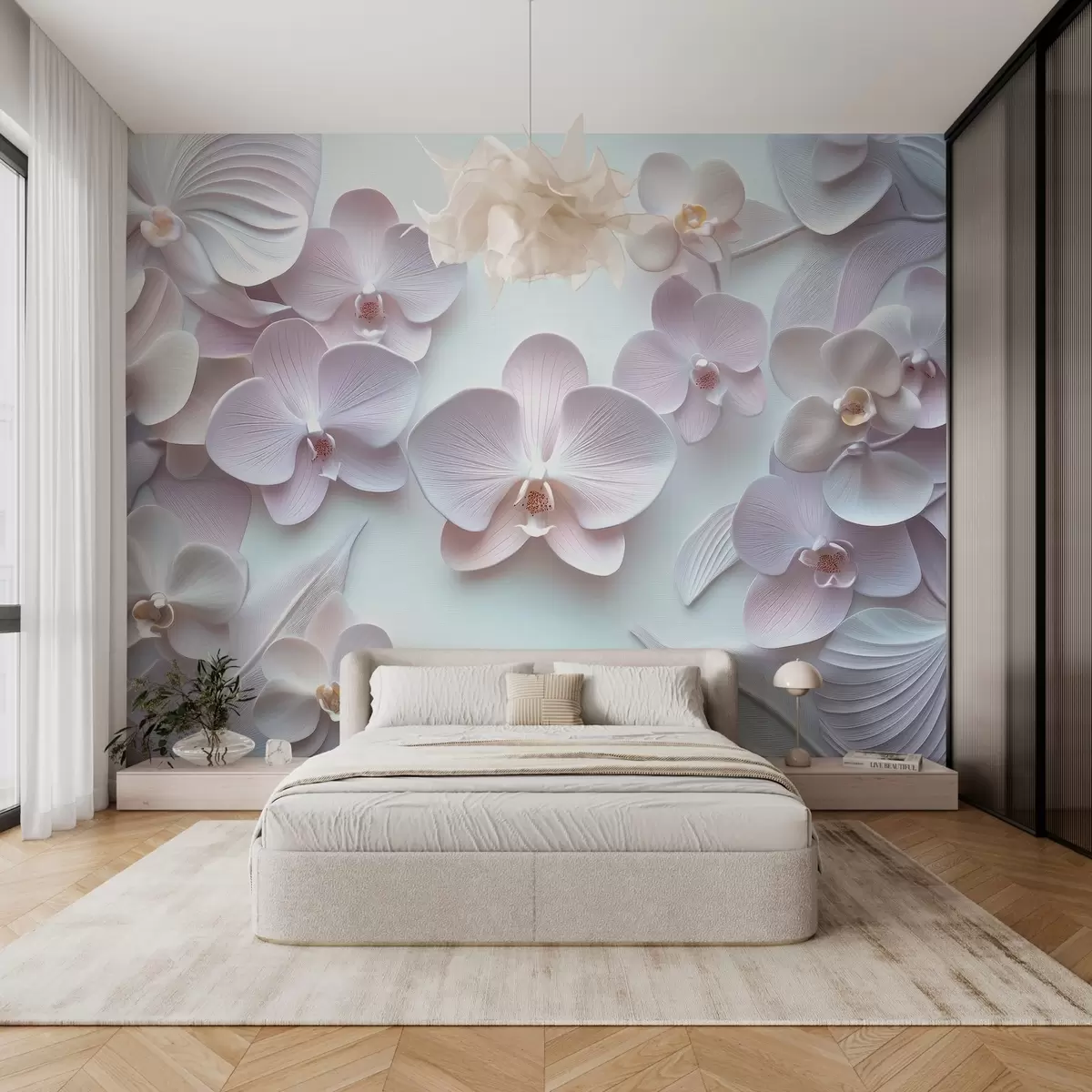 Fotomurales Delicadas flores de arquidios en colores claros con imitación 3D Nr. w02912