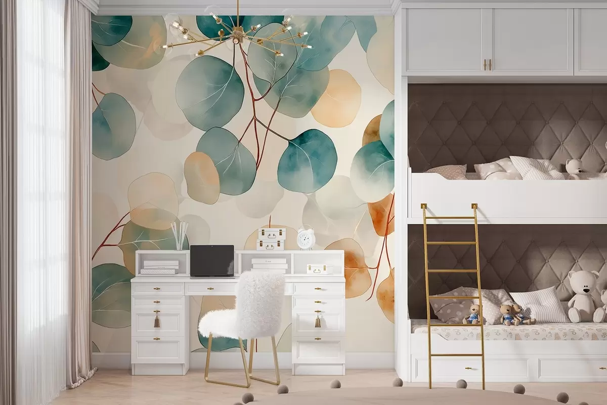 Fotomurales Dibujo de eucalipto estilo acuarela, colores pastel suaves, floral Nr. w02938