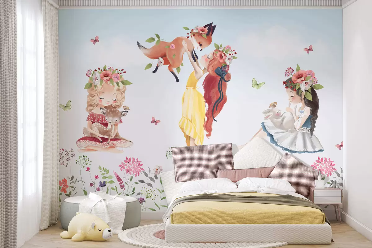 Fotomurales Niñas con simpáticos animales del bosque Nr. w03002