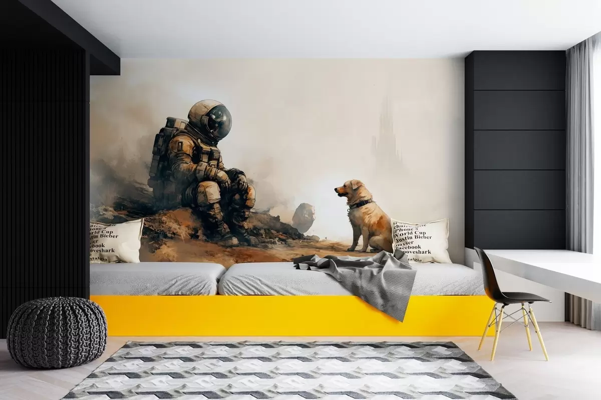 Fotomurales paisaje postapocalíptico con un astronauta y un perro Nr. w03115