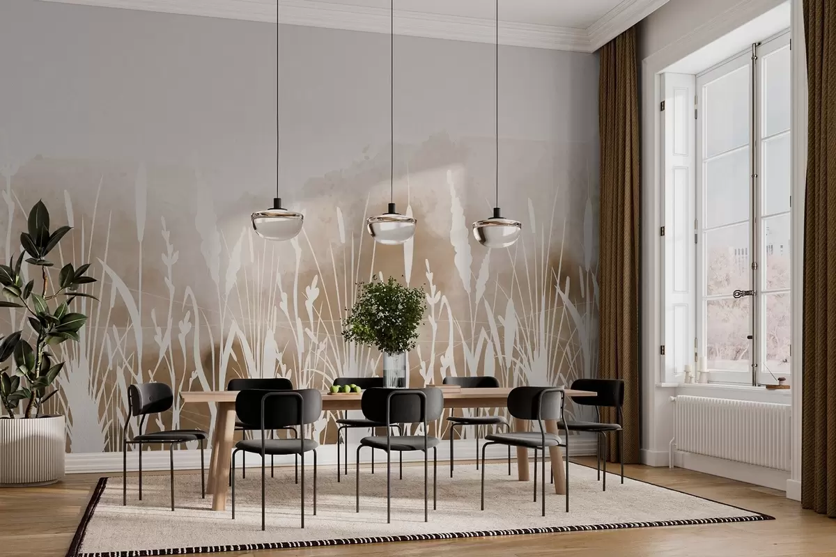 Fotomurales Siluetas de plantas de prado sobre fondo claro Nr. w03134