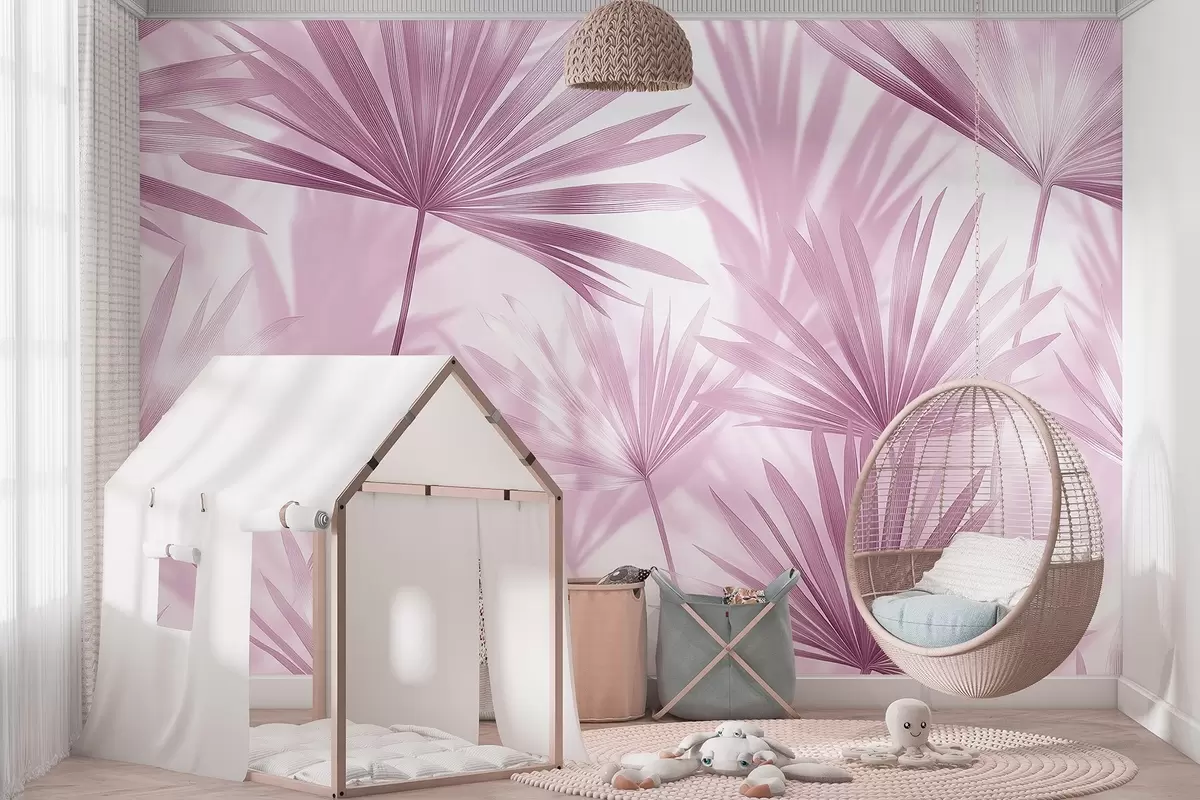 Fotomurales Hojas de palmera, motivo floral, minimalismo, tropical, colores rosas Nr. w03152v4