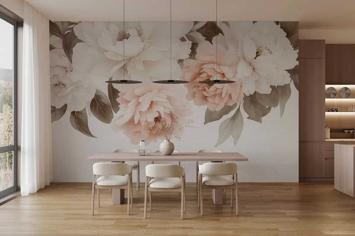 Fotomurales Delicadas peonías vintage en acuarela Nr. w03317