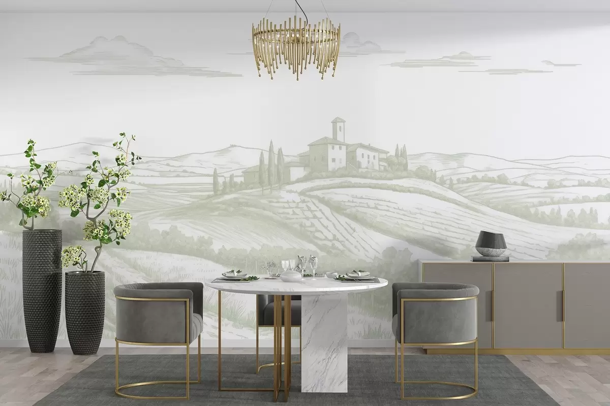 Fotomurales Paisajes de la Toscana, Italia, viñedos, naturaleza, castillo antiguo, colores verdes Nr. w03349v2