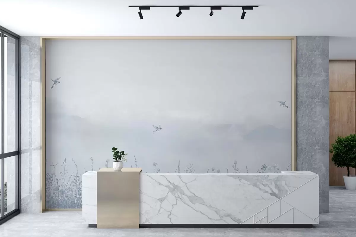 Fotomurales Flores silvestres y cielo brumoso en tonos azules Nr. w03391v1