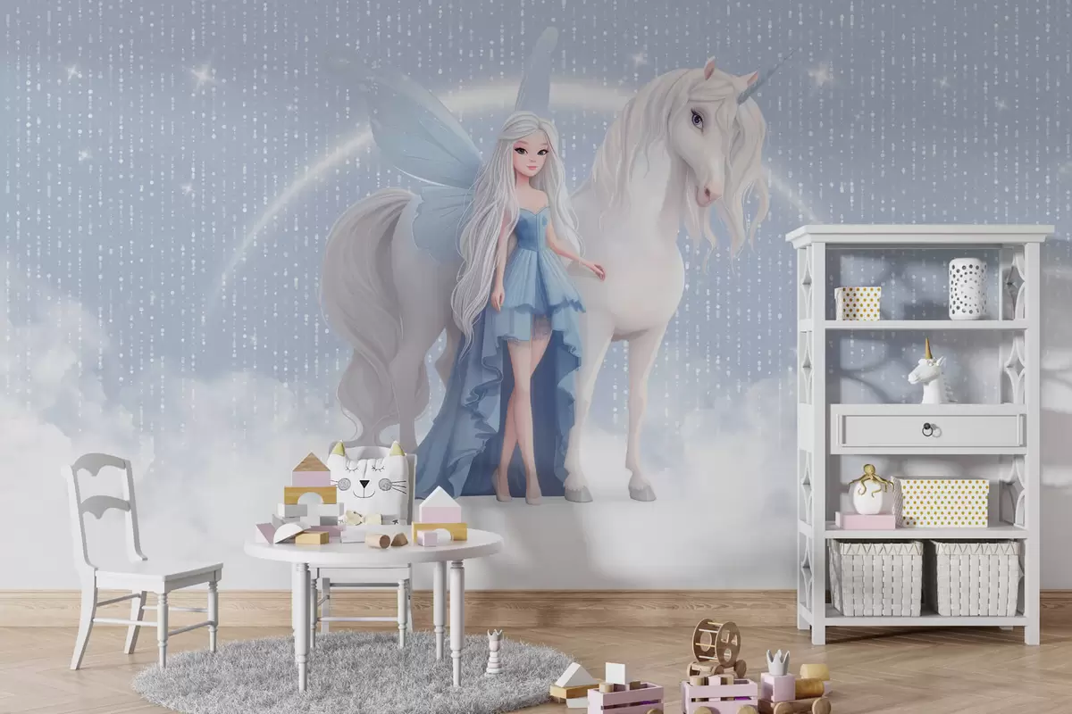 Fotomurales Un hada con un unicornio entre las nubes Nr. w03527v1