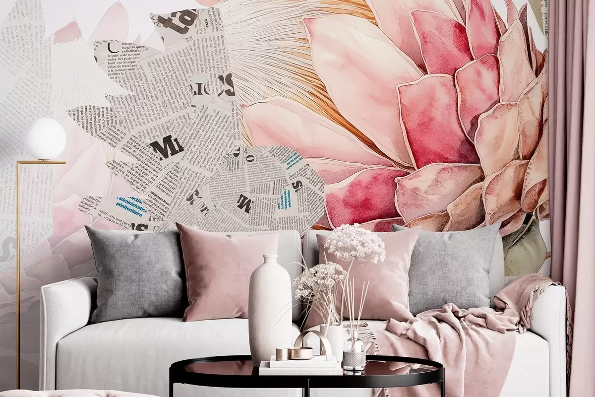 Fotomurales Flores de protea, arte periodístico, floral, tropical, colores naturales Nr. w03667