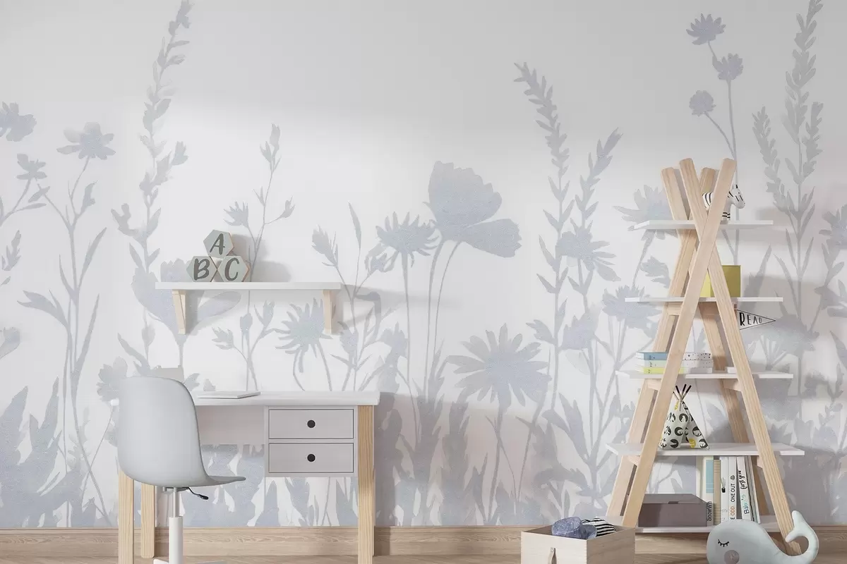 Fotomurales Pradera de verano, rústica, flores, paleta de colores azules Nr. w03670v1