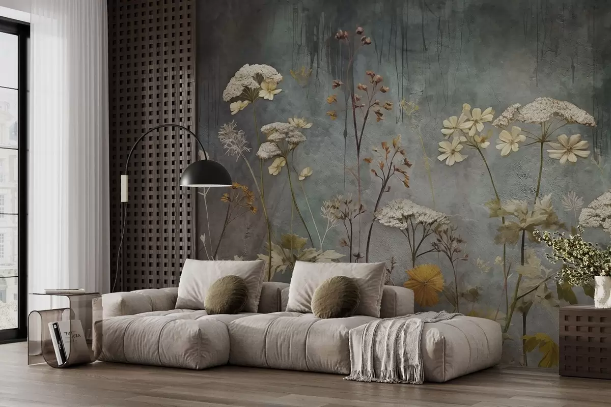 Fotomurales Flores silvestres y hierbas en el fondo de la pared grunge Nr. w03697