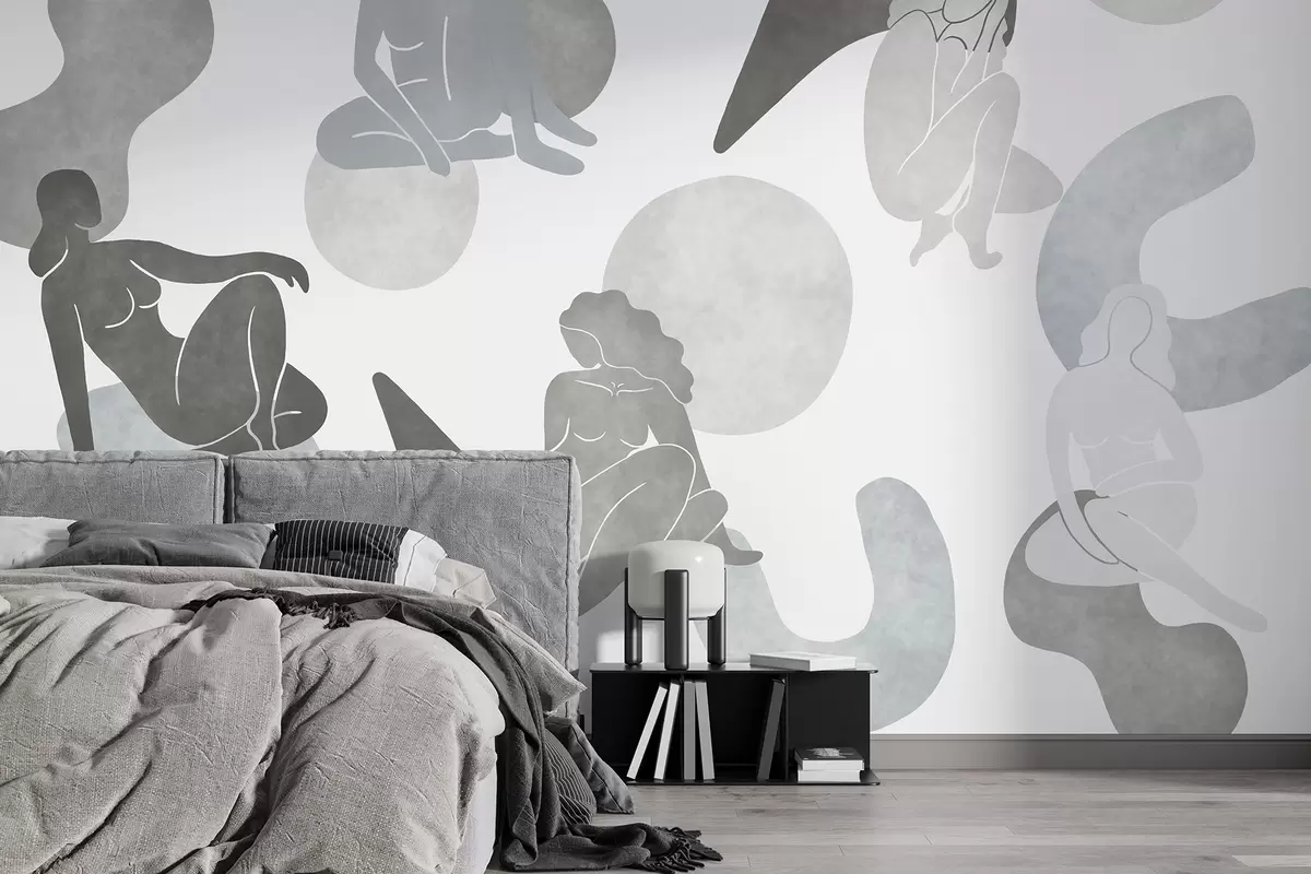 Fotomurales Abstracciones geométricas con siluetas femeninas, estilo boho, colores grises Nr. w03753v5