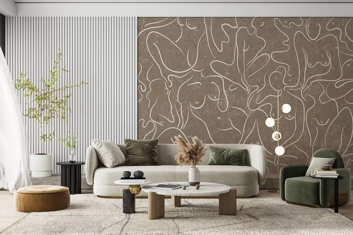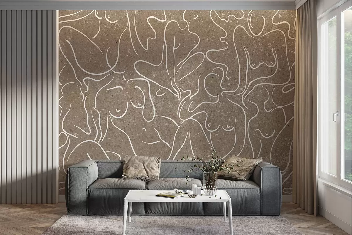 Fotomurales Dibujo lineal siluetas anatómicas, abstracción, fondo beige Nr. w03756