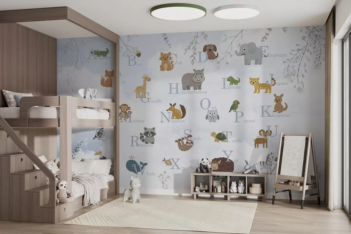 Fotomurales Alfabeto con letras azules, plantas y cielo Nr. w03809v1