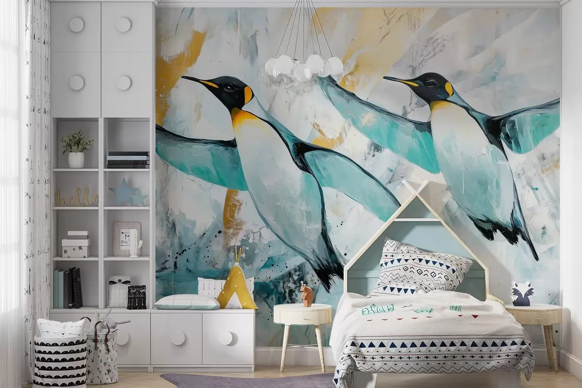 Fotomurales Simpáticos pingüinos, Antártida, hielo azul, animales, dibujo al óleo Nr. w03883