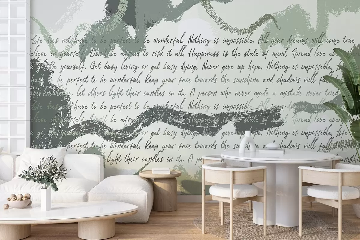 Fotomurales Diseño con citas inspiradoras, abstracción, colores verdes Nr. w03909v1