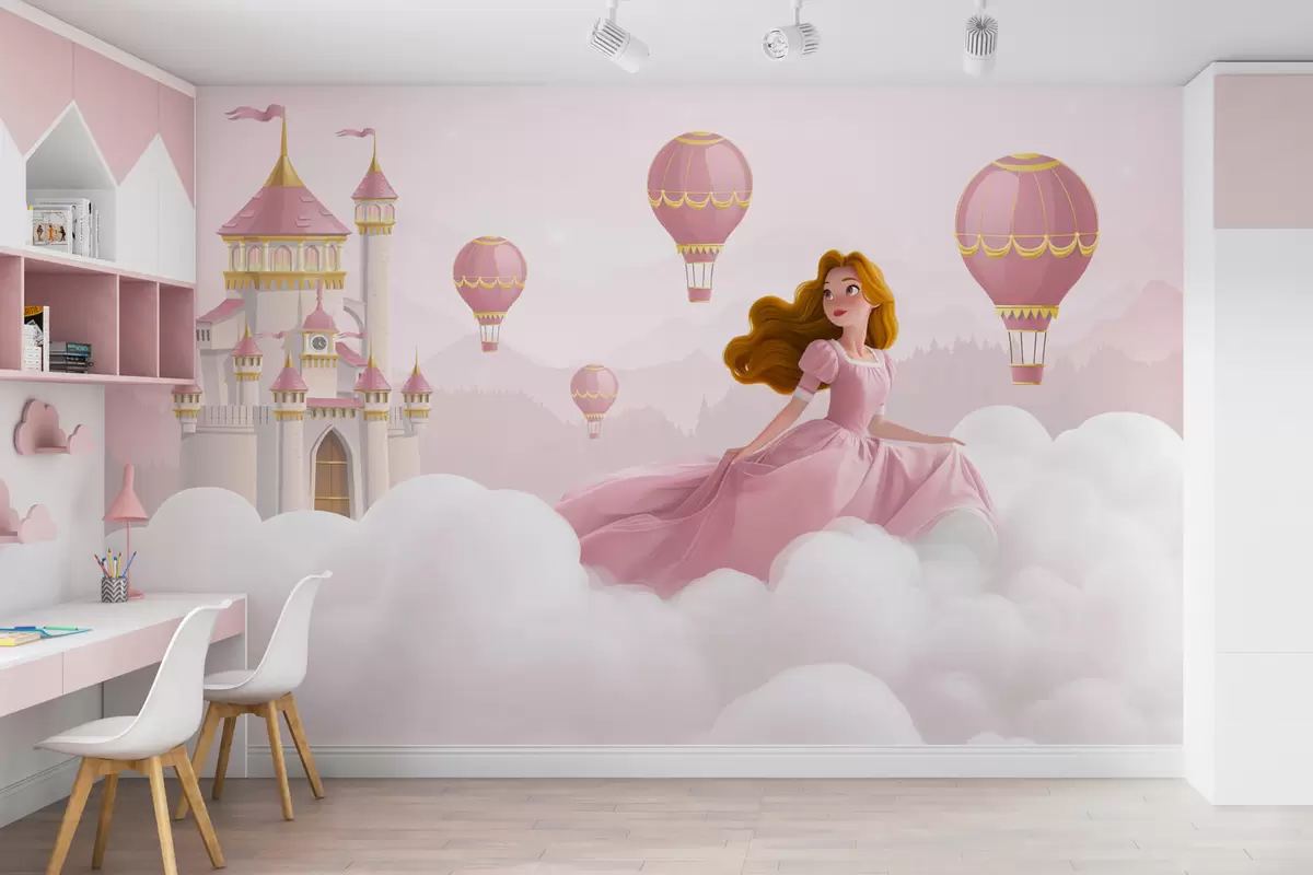 Fotomurales Princesa entre las nubes sobre el fondo del paisaje con el castillo Nr. w04015v1