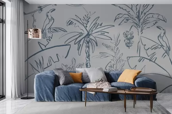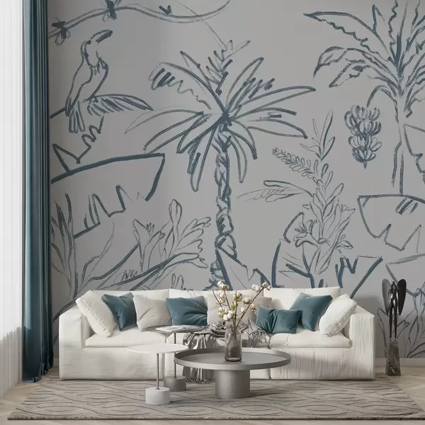 Fotomurales Motivo tropical en azul, plátanos, palmeras Nr. w04020v1