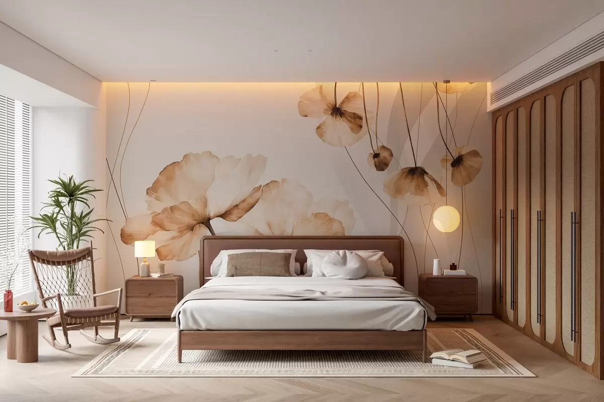 Fotomurales flores estilo acuarela en tonos marrones Nr. w04026