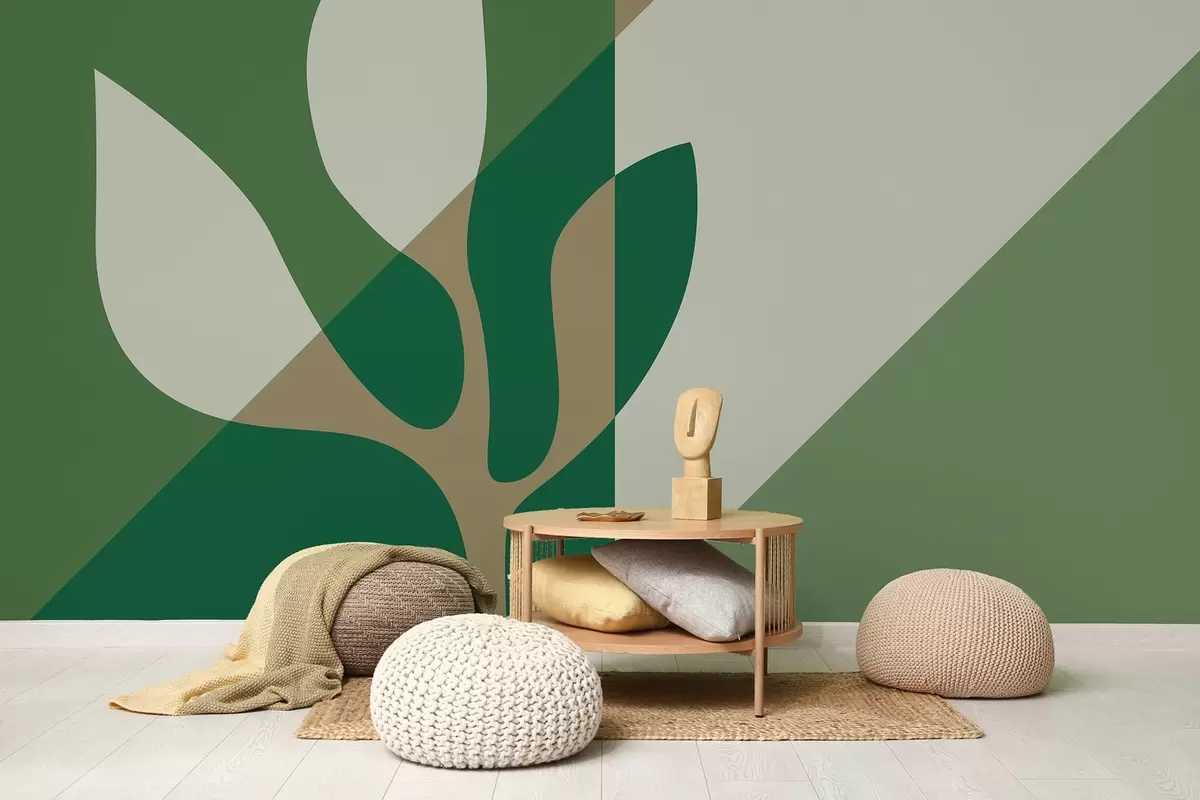 Fotomurales planta gráfico abstracto sobre el fondo de la geometría en colores verde y ocre Nr. w04028