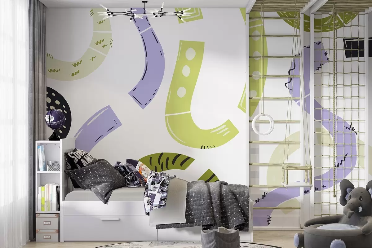 Fotomurales Dibujos abstractos, juvenil, garabatos, verde, morado Nr. w04066v1