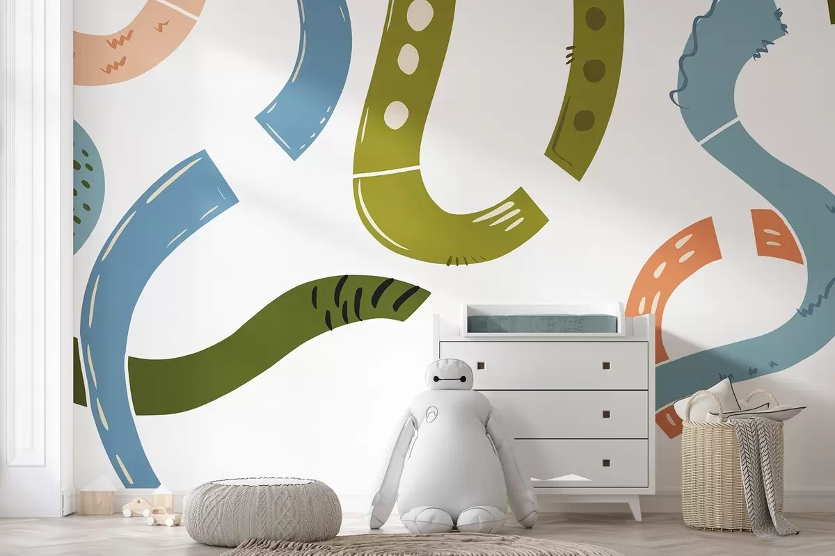 Fotomurales Dibujos abstractos, juveniles, garabatos, verde, azul, rosa Nr. w04066v2