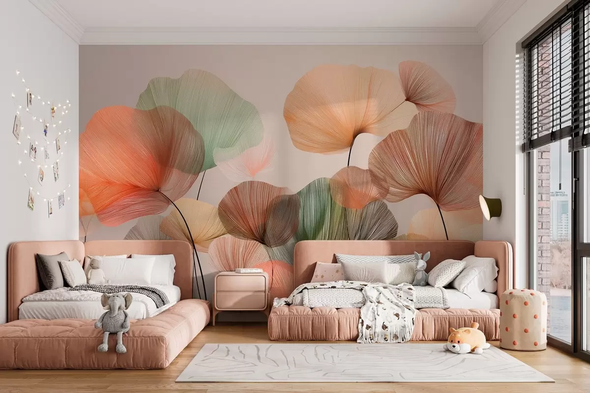 Fotomurales hojas de ginkgo multicolores con venas Nr. w04305