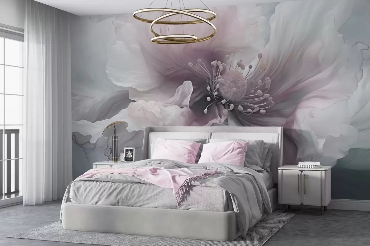 Fotomurales Delicada flor con pétalos rosas y blancos Nr. w04446