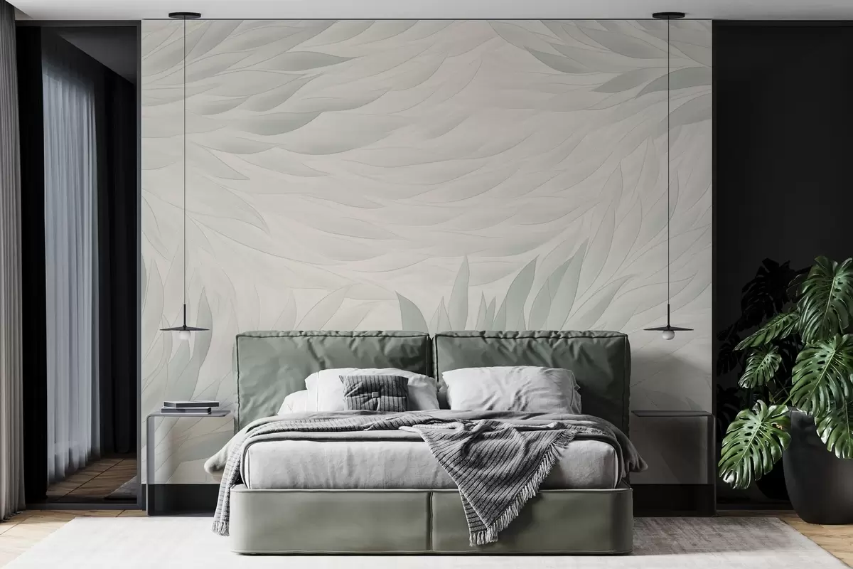 Fotomurales Hojas onduladas en suaves tonos verde-beige Nr. w04610v2