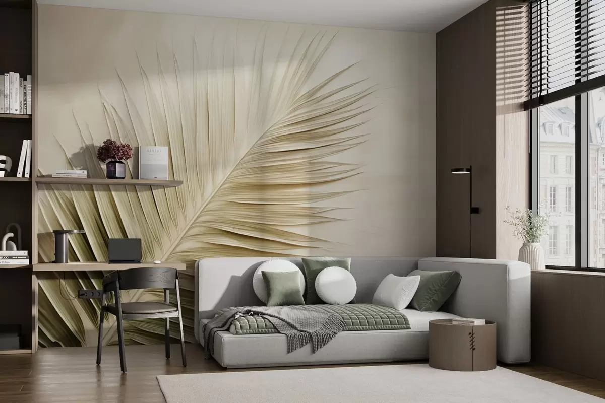 Fotomurales Hoja de palmera beige sobre fondo de textura suave Nr. w04618