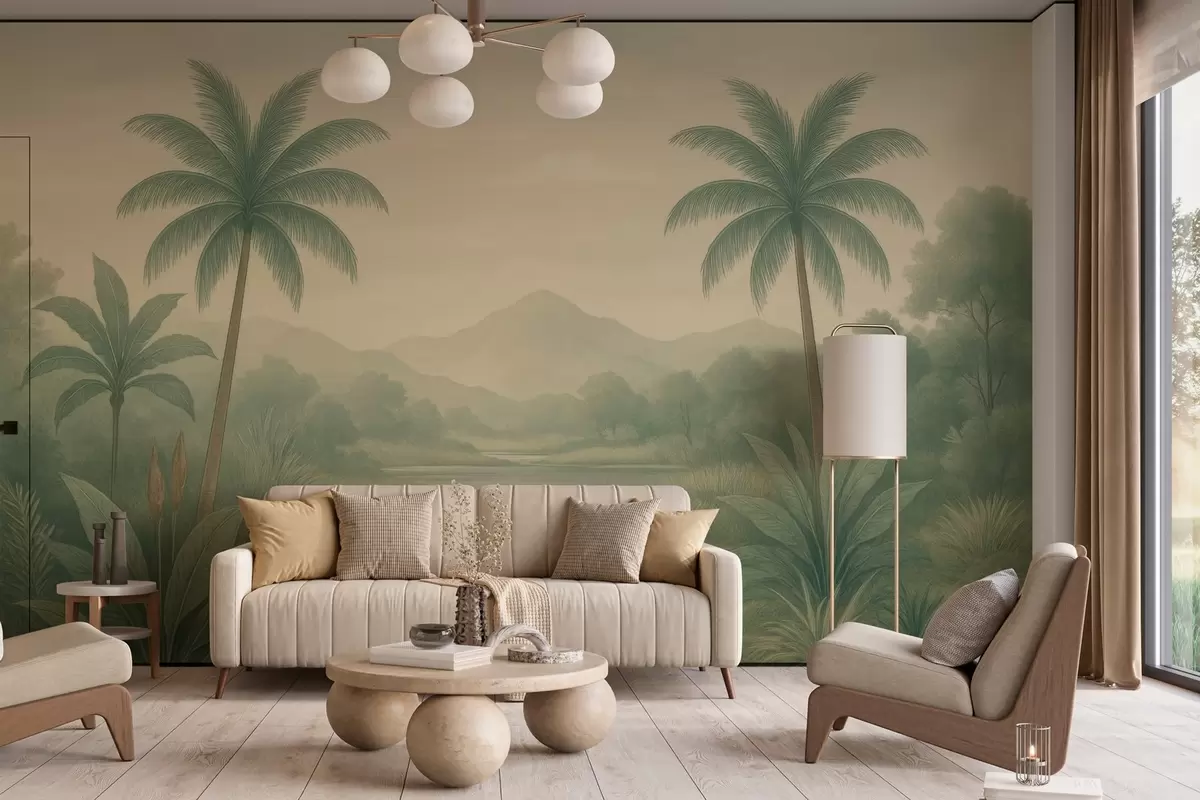 Fotomurales paisaje tropical con palmeras y un río Nr. w04623