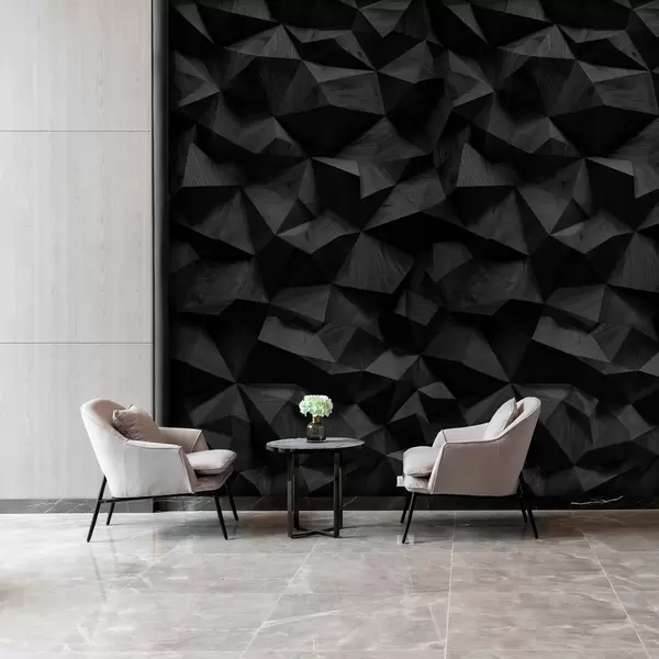 Fotomurales imitación de una pared con relieve angular hecha de madera oscura Nr. w04632v1