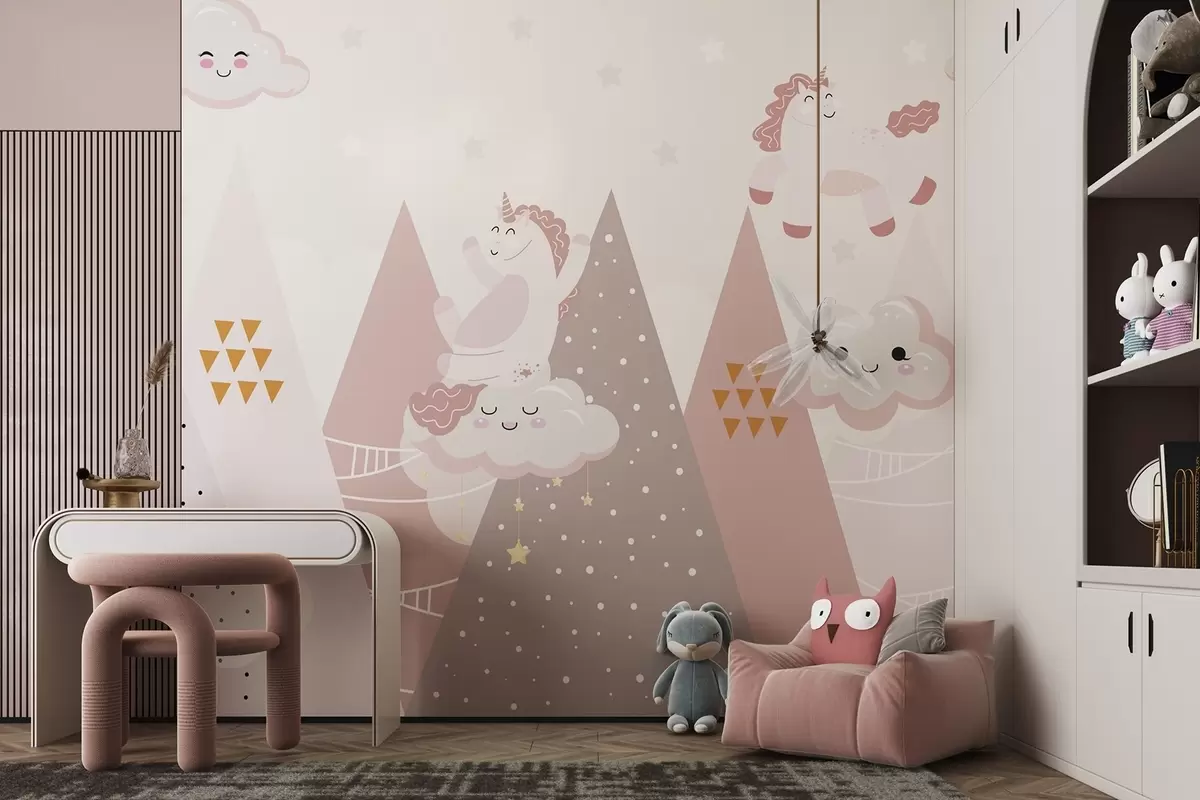 Fotomurales Poni en las montañas con nubes Nr. w04741