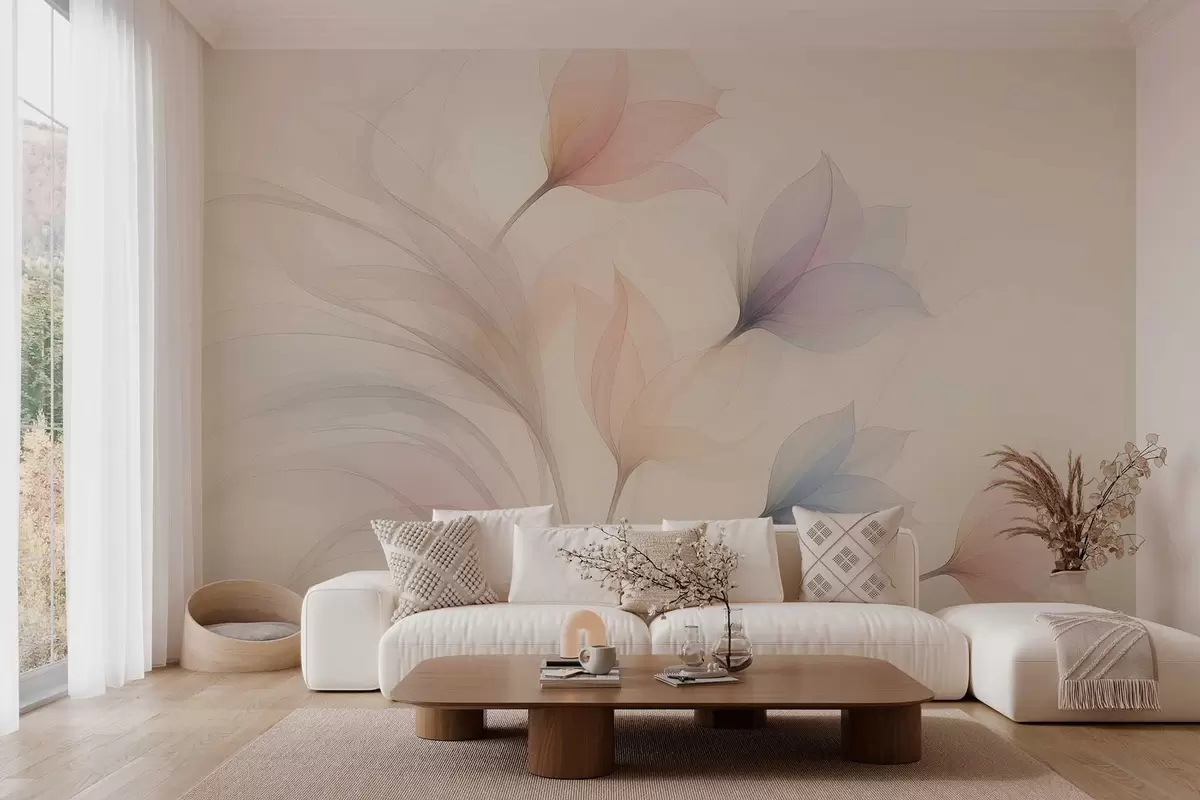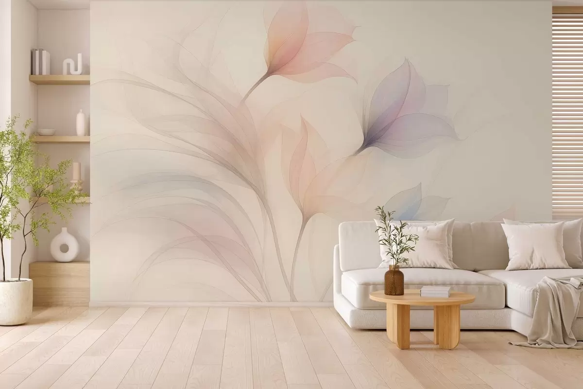 Fotomurales delicados tulipanes semitransparentes sobre fondo beige Nr. w04754