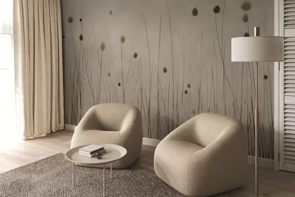 Fotomurales Hierbas finas y cabezas de semillas esponjosas sobre un fondo beige cálido. Nr. w04793