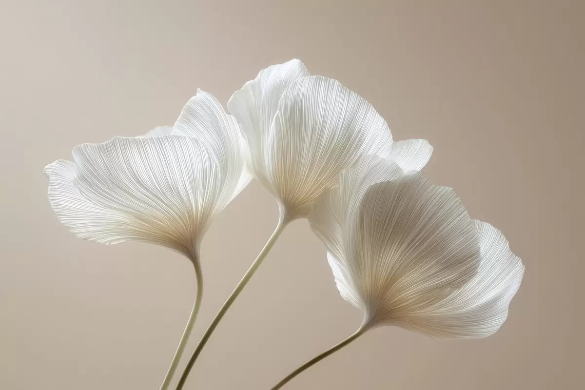 Fotomurales tres delicadas flores sobre un fondo beige Nr. w04810