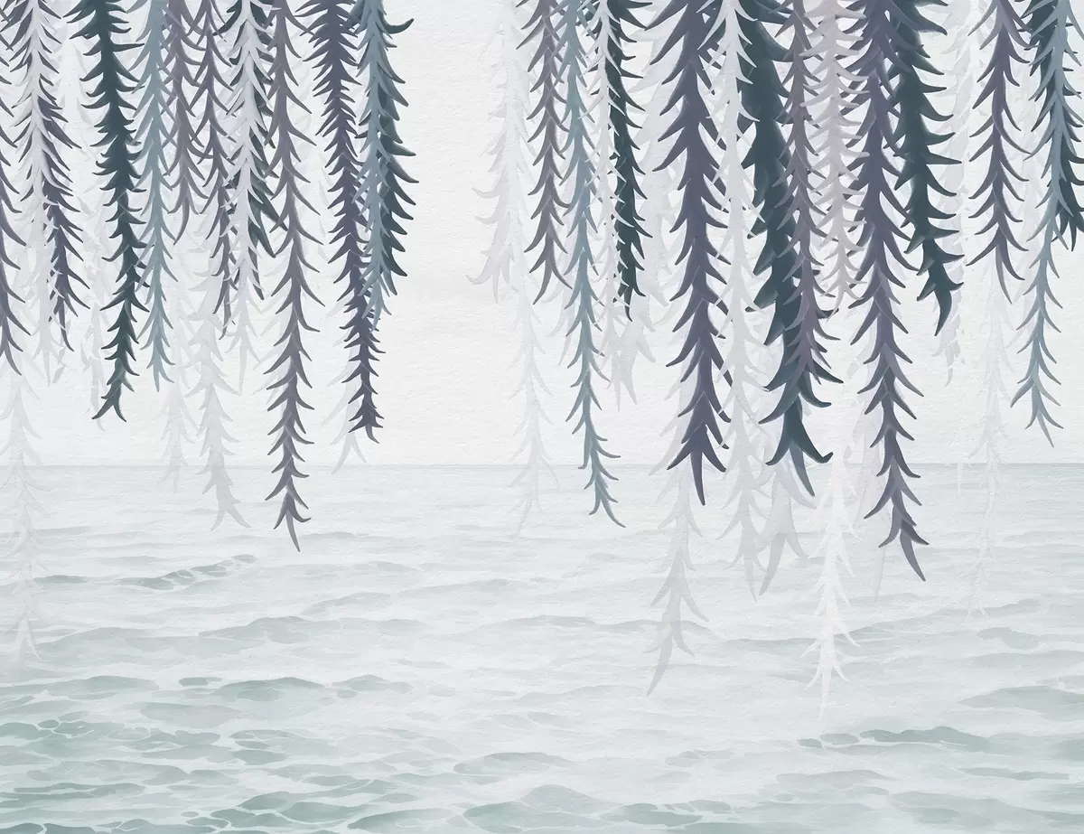 Fotomurales Delicadas enredaderas colgando sobre el agua, estilo acuarela. Nr. w04830v3