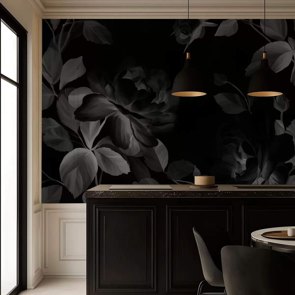 Fotomurales Rosas pintorescas en blanco y negro al estilo de la pintura al óleo. Nr. w04873v1