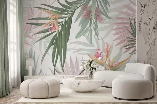 Fotomurales Strelitzia entre el follaje de las palmeras Nr. w04896v2