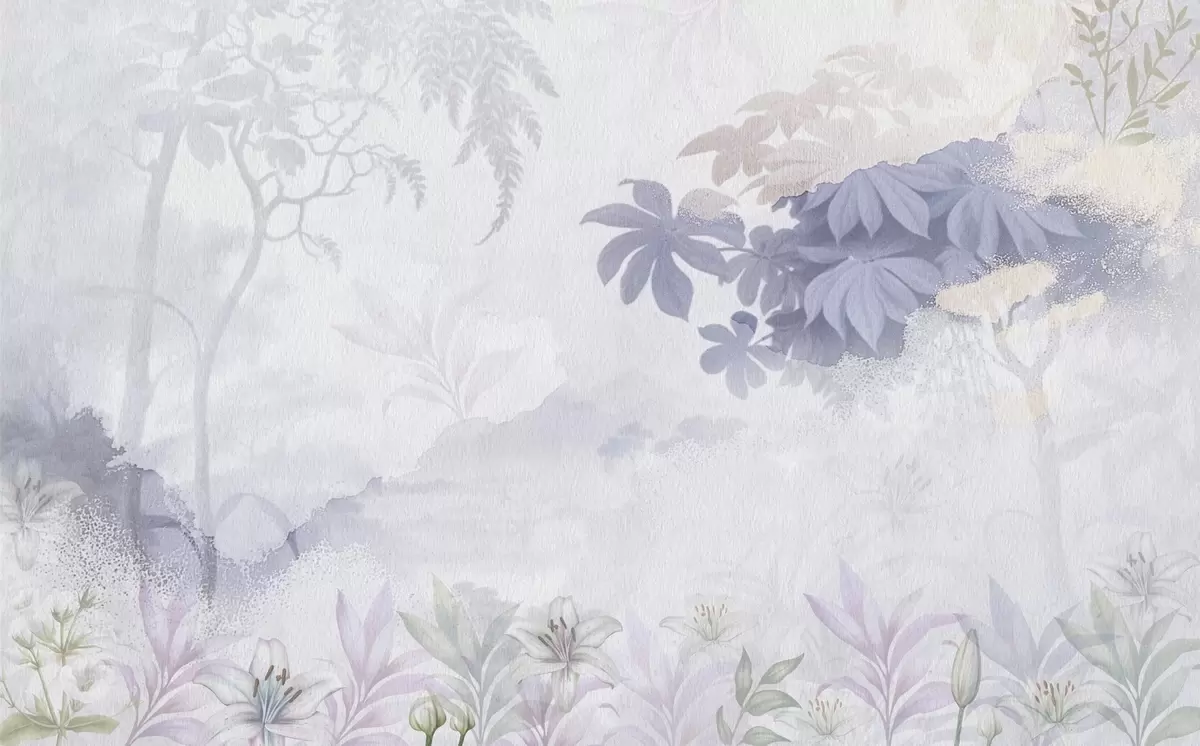 Fotomurales Delicado jardín pintado con acuarelas en un amanecer brumoso Nr. w04934