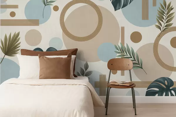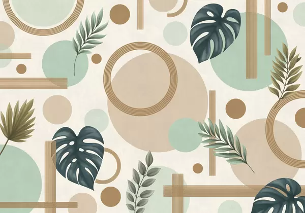 Fotomurales Diseño geométrico con hojas y círculos en tonos suaves. Nr. w05018