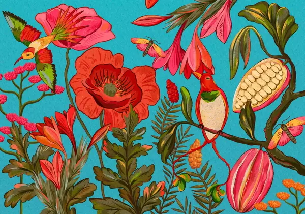 murales de pared Flores y pájaros decorativos sobre fondo beige w05036