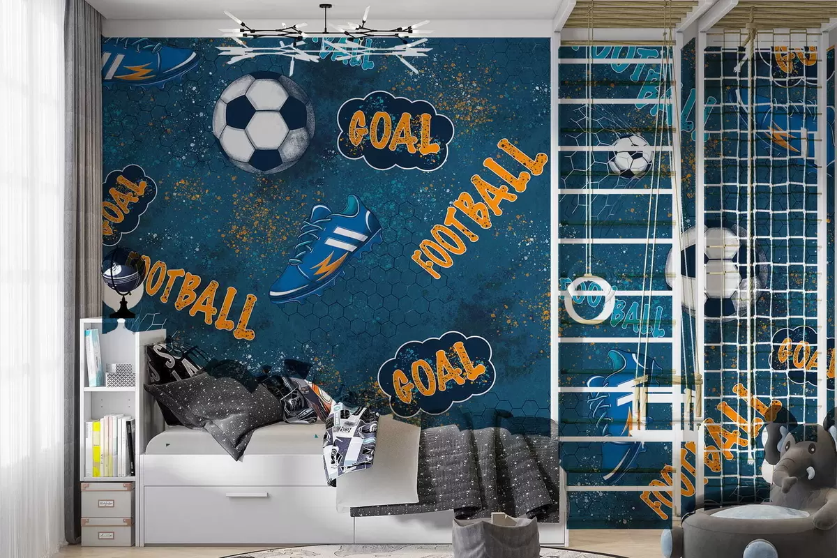 Fotomurales Diseño infantil con pelotas, zapatillas y palabras deportivas. Nr. w05037