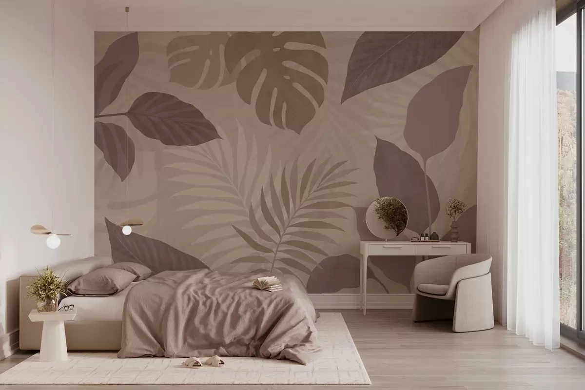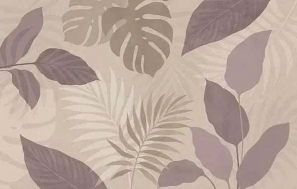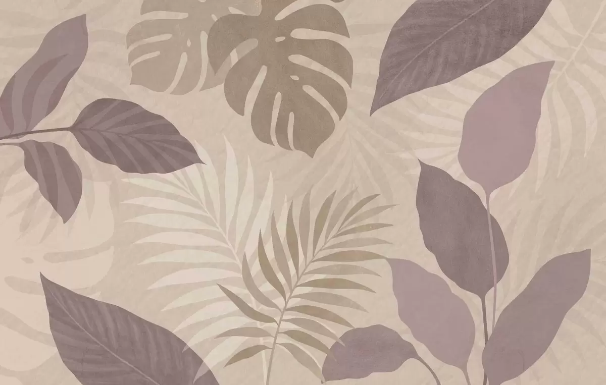 Fotomurales Hojas tropicales texturizadas sobre fondo arenoso. Nr. w05063